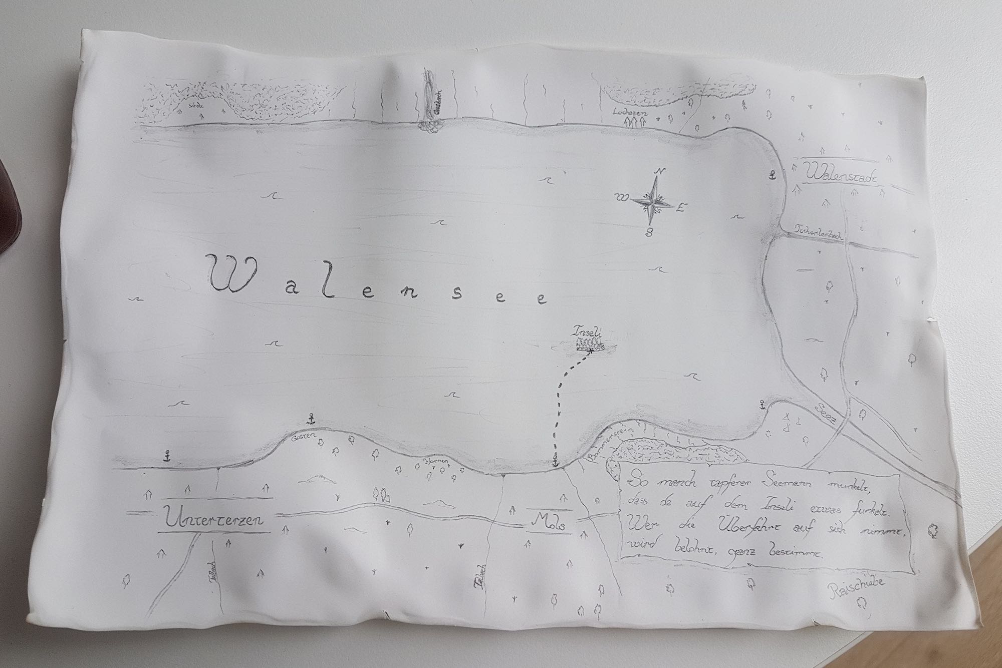 Piratenfahne als Abschiedsgeschenk. Die Fahne wurde von Hand mit Wolle bestickt.