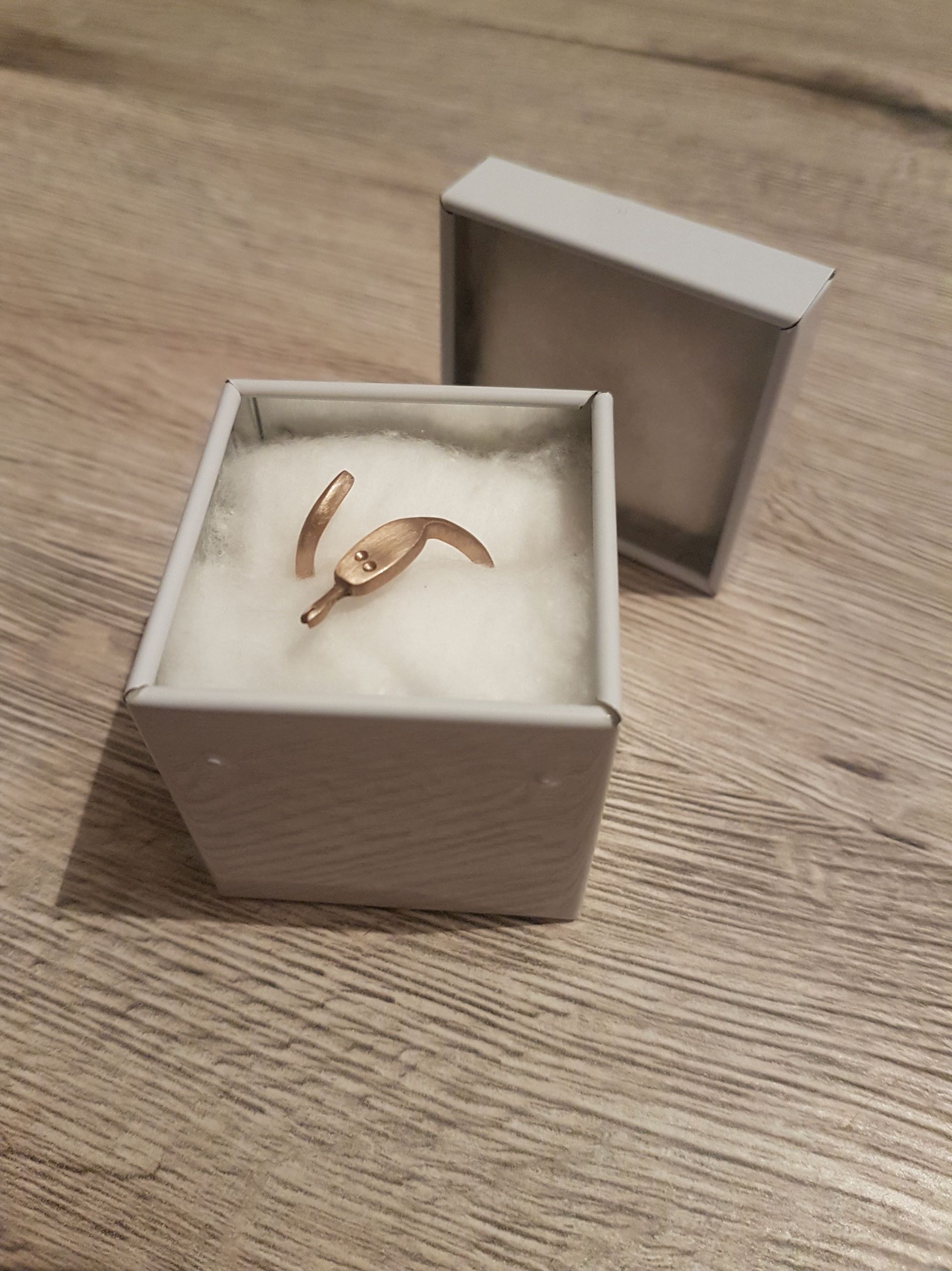 Eine Schlange, welche sich um den Finger schlängelt. Dieser Ring war ein Geschenk für eine Dame, die gerne Schlangen mag.