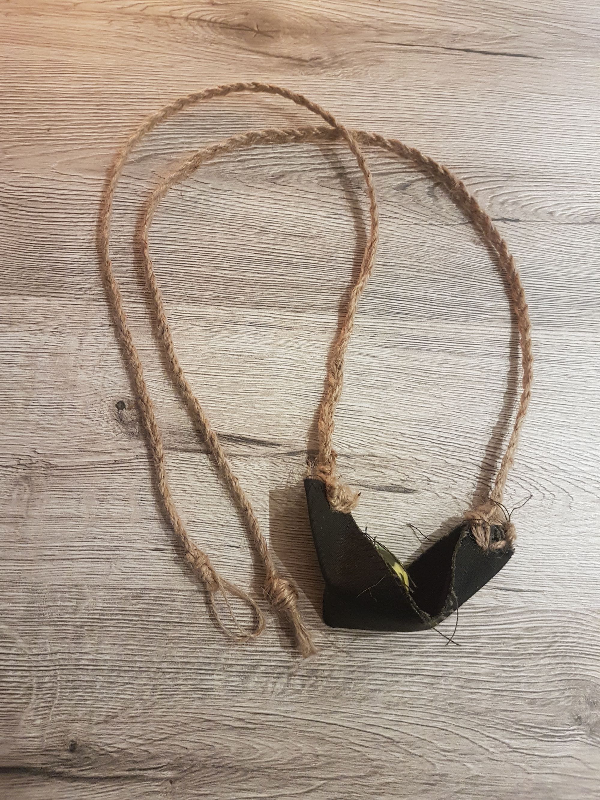 Um Geweih als Arbeitsmaterial zu erproben wurde ein runder Ring gefertigt, der die Spuren des Waldes trägt.